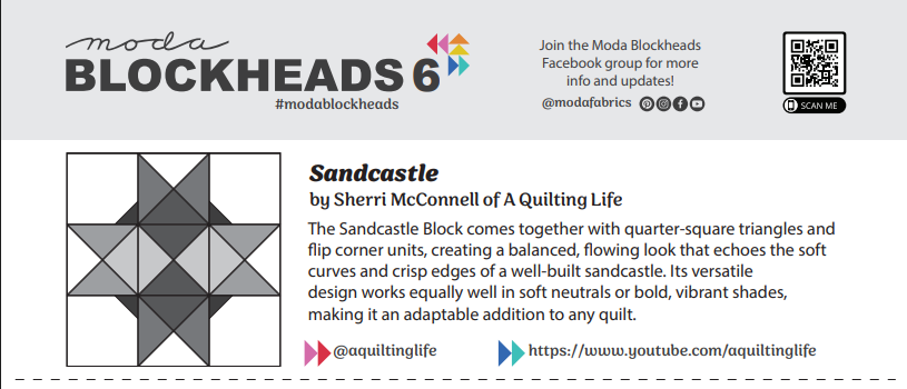 Moda Blockheads is a free quilt-along series from Moda Fabrics that brings together some of your favorite designers to share brand-new quilt block patterns each week. It's a chance to explore different styles and techniques, stretch your creativity, and sew at your own pace—all while connecting with a vibrant community of quilters. Whether you're a seasoned pro or just getting started, Blockheads is all about learning, experimenting, and having fun. Be sure to join the Moda Blockheads Facebook Group, where over 70,000 members share their blocks, tips, and encouragement. You can also follow along and share your progress on social media using the hashtag #ModaBlockheads6.